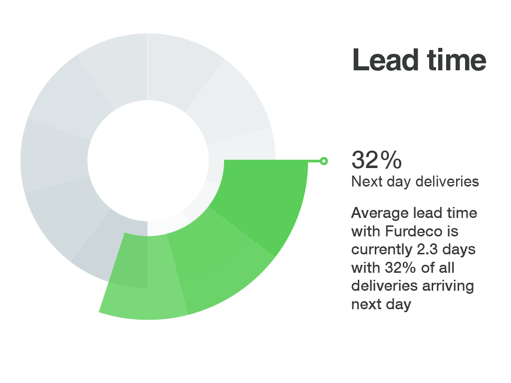 Our average lead time with Furdeco is currently 2.3 days with 32% of all deliveries arriving the next day!